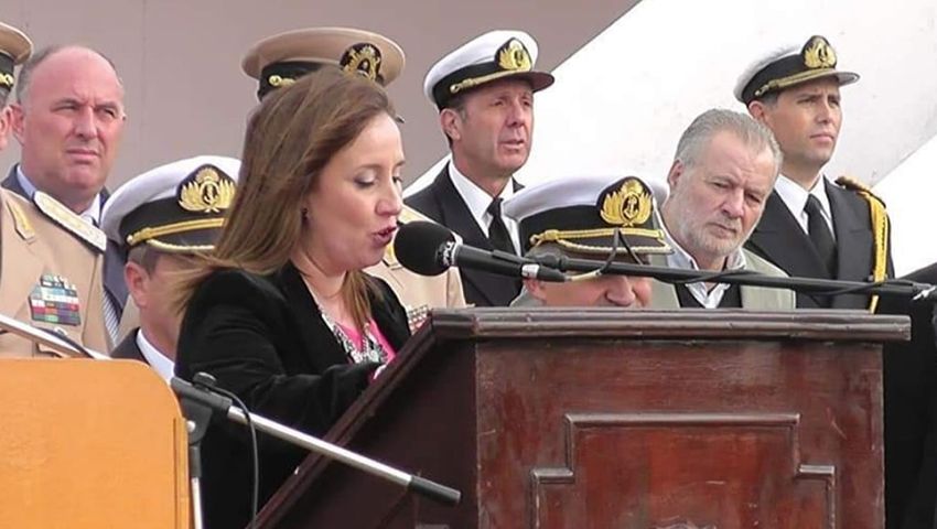Evangelina Giménez es agente civil en la Base Naval Puerto Belgrano y como locutora nacional presta su voz para diferentes actos y eventos de la Institución.